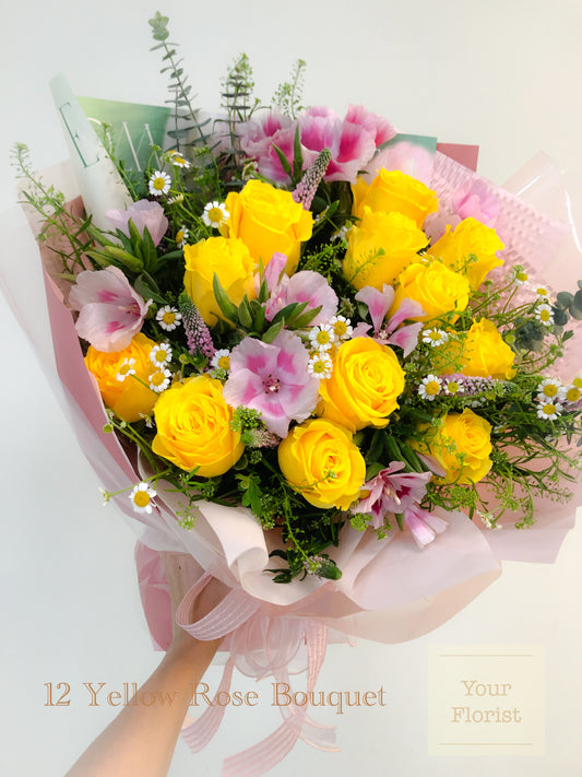 12 Yellow Rose Bouquet 黃玫瑰花束